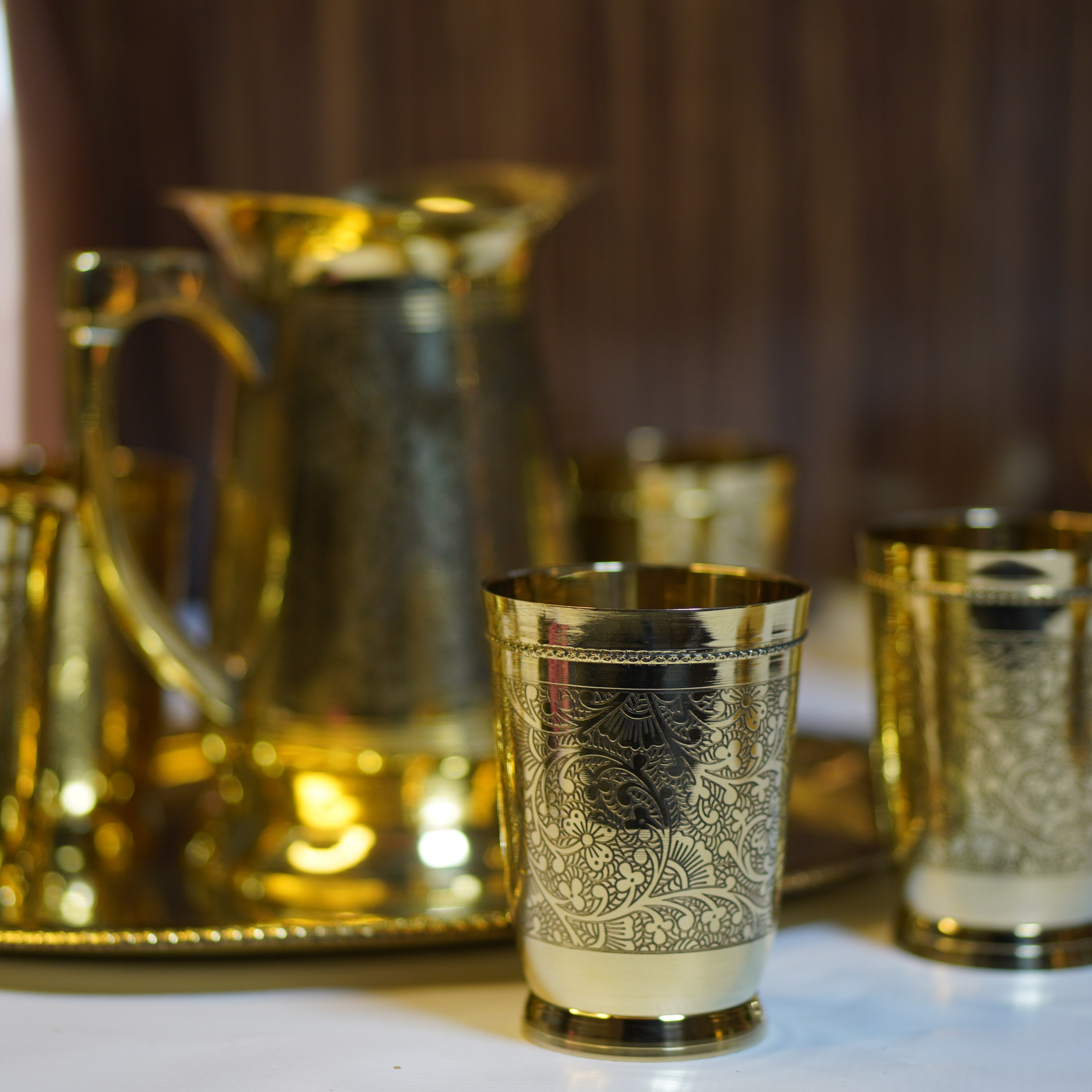 Etched Brass Glass for Drinking - Brass Globe -