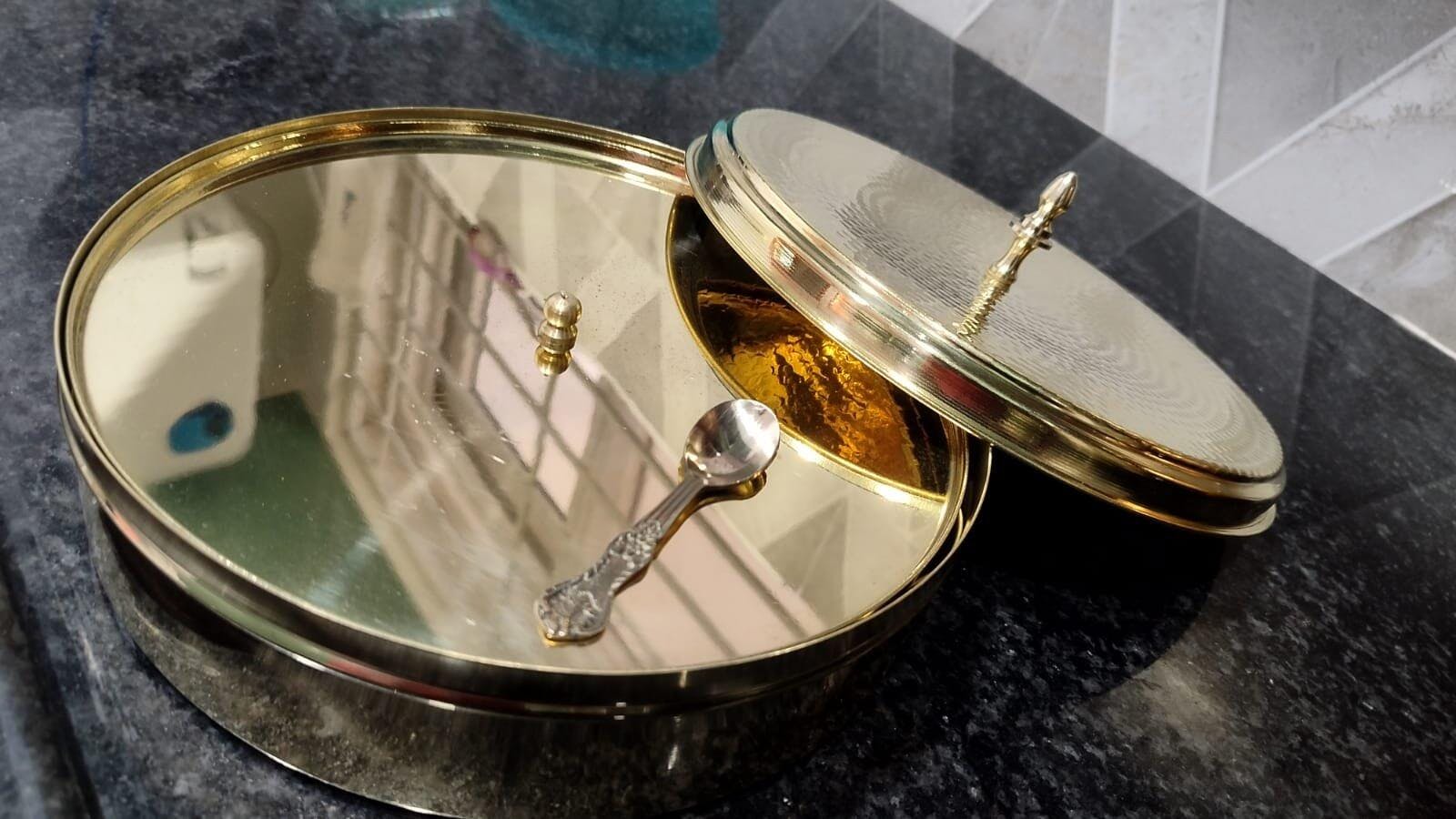 - Brass Globe Brass Hammered Spice Container (Masala Box) is manufactured from heavy duty material. Hence, it makes it very durable and is suitable for long time use.
